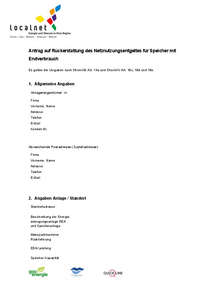 Antrag auf Rückerstattung des Netznutzungsentgeltes für Speicher mit Endverbrauch Es gelten die Vorgaben nach StromVG Art. 14a und StromVV Art. 18c, 18d und 18e. 1. Allgemeine Angaben…