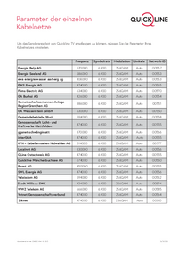 Parameter der einzelnen Kabelnetze Um das Senderangebot von Quickline TV empfangen zu können, müssen Sie die Parameter Ihres Kabelnetzes einstellen. Frequenz Symbolrate Modulation Umkehr …