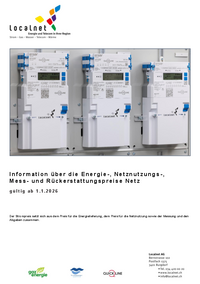 Information über die Energie-, Netznutzungs-, Mess- und Rückerstattungspreise Netz gültig ab 1.1.2026 Der Strompreis setzt sich aus dem Preis für die Energielieferung, dem Preis für die Netznutzung…
