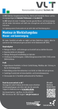 Die VLT bildet das Kompetenzzentrum für Bau, Betrieb und Unterhalt der Wasser- und Gasversorgungsanlagen der Emmental Trinkwasser und Localnet AG. Die VLT betreut mit einem 12-köpfigen Team das…