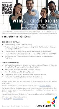 DEINE BENEFITS W I R S U C H E N D I C H! Als lokal verankertes Unternehmen versorgen wir die Region Burgdorf mit Strom, Gas, Wasser, Telecom und Wärme. Du möchtest die Transformation eines…