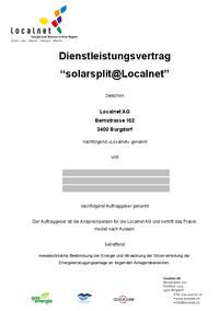 Dienstleistungsvertrag “solarsplit@Localnet” zwischen Localnet AG Bernstrasse 102 3400 Burgdorf nachfolgend «Localnet» genannt und nachfolgend Auftraggeber genannt Der Auftraggeber ist die…