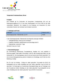 Temporärer Eventanschluss, Strom Preisblatt Das Preisblatt gilt für Endkunden mit temporärem Eventanschluss (EA) auf der Niederspannungsebene (0.4 kV) bei einem Anschlusswert von 63 bis 160A an den…