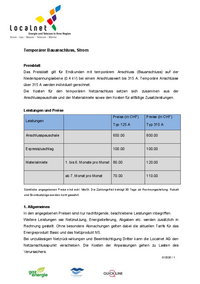 Temporärer Bauanschluss, Strom Preisblatt Das Preisblatt gilt für Endkunden mit temporärem Anschluss (Bauanschluss) auf der Niederspannungsebene (0.4 kV) bei einem Anschlusswert bis 315 A. Temporäre…
